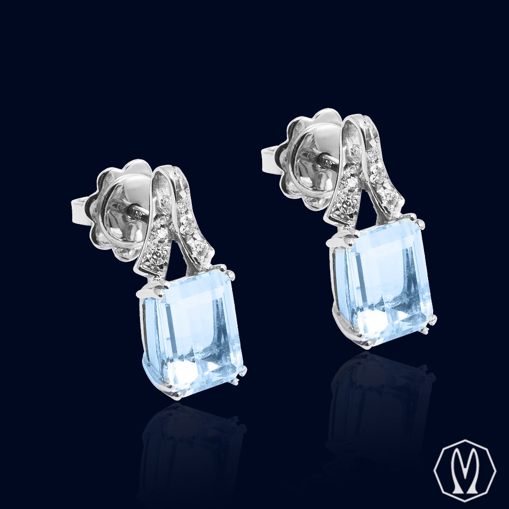 Orecchini Gocce di Acquemarine e Diamanti Oro18kt
